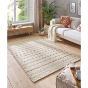 Tapeso Wollen vloerkleed strepen - Jarl crème|rood - 90x160 cm