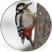 Wanddecoratie rond - Een grote bonte specht in de winter - Muurcirkel binnen Muurcirkels van WallCircle geven een stoere en industriële look aan de wand van jouw woonkamer, slaapkamer,…