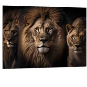 Dibond - Portretfoto van Drietal Prachtige Leeuwen - 100x75 cm Foto op Aluminium (Met Ophangsysteem)   Hoge Kwaliteit Fotoprint op Dibond  Deze foto wordt geprint op…
