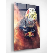 Luxe Max Verstappen On Fire Red Bull Glasschilderij - Inclusief Ophangsysteem - Formaat 70x50