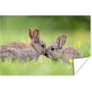 Twee verliefde baby konijnen poster papier 180x120 cm - Foto print op Poster (wanddecoratie woonkamer / slaapkamer) / Huisdieren Poster XXL / Groot formaat!