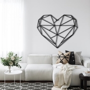 Wanddecoratie | Geometrisch Hart / Geometric Heart| Metal - Wall Art | Muurdecoratie | Woonkamer |Zwart| 61x51cm