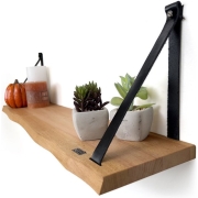 Industrial Living Wandplank 80x18 cm - Massief Beukenhout met Leer - Zwevende Boekenplank met Lederen Lussen - Zwevend Industrieel Muurplank van Beuken Hout - Rustiek Plank voor Muur met Leren Riemen