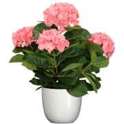 Hortensia kunstplant/kunstbloemen 45 cm - roze - in pot wit glans -