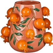 Van de Melika vaas van Mica Decorations word je echt blij! Deze vrolijke vaas van keramiek is roze en versierd met bladeren en granaatappels die eruit springen! Zorg voor een kleurrijke sfeer in je…